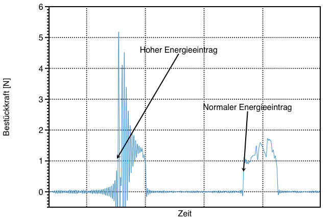 Hohe Energieerträge können Bauteile beschädigen. Die Kenntnis des Kraft-Zeit-Verlaufes einer Bestückung ist wichtig zur Risikoanalyse.