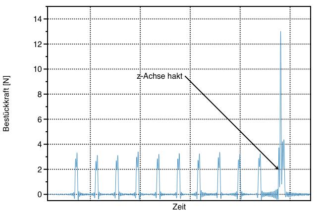 Defekte am Bestückkopf können sporadisch hohe Bestückkräfte verursachen, das kann zu Bauteilschäden führen.